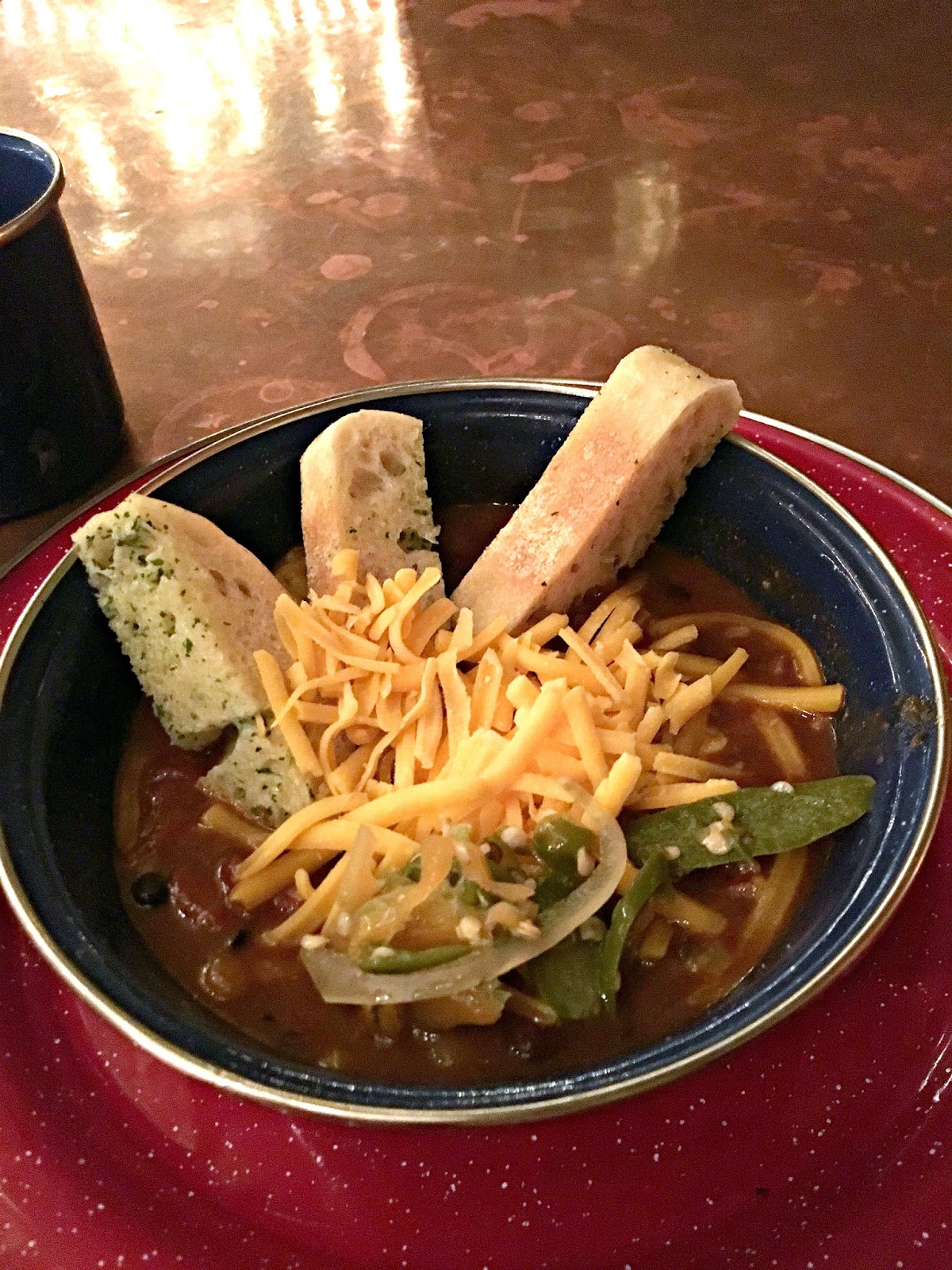 First course: Chili! I love chili, I really really love chili, but I don’t love other peoples’ chili. I’m skeptical, and very partial to my recipe. But you guys, this chili made my chili look silly. There’s something about chili, being served with a ladle, out of a cast iron pot. It was delicious, and the jalepenos gave it the perfect kick!