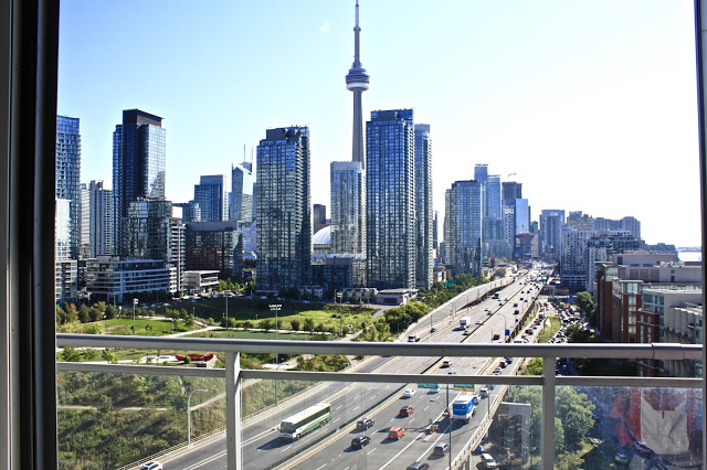 If you follow me on Snapchat or Instagram, you got a sneak peek at the fabulous view from our AirBnB! We could literally look out of our bed and see the Toronto skyline and the harbor. It was fabulous!