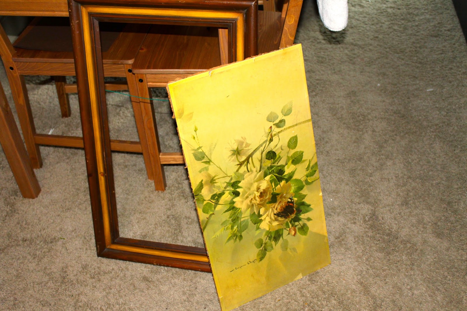 Much like any other pre-assembled frame, the backing is one large sheet. Just like the Picture frames I recently up cycled, I had to cut out the actually picture in order to be able to separate it from the frame. Easy-peasey, I’m a pro at this!
