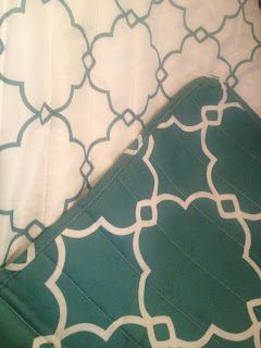 As I already knew my colors were going to be sort of a light blue/ green color along with white and grey, I found this steal of a comforter for almost 1/2 of what I was going to pay for it on Overstock.com! Score! I love bargain!