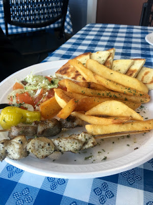 Judy opted for the souvlaki plate which came with chicken and pork kabobs, a small greek salad and more of their delicious fries. Her meat was so tender it almost melted in our mouths.