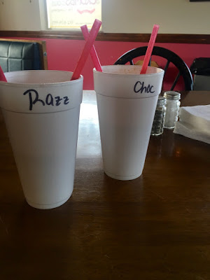 Judy and I split the Razzleberry and Chocolate Cream pie shakes.