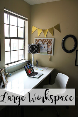 6. This one may sound a little silly, but the bigger your work space the less you’ll feel cluttered. I bought a HUGE desk when we moved in to our new home, and it has aided so much in the organization process. I don’t feel crammed in to a tiny space and it allows me to lay out all of my necessary materials all at one time!