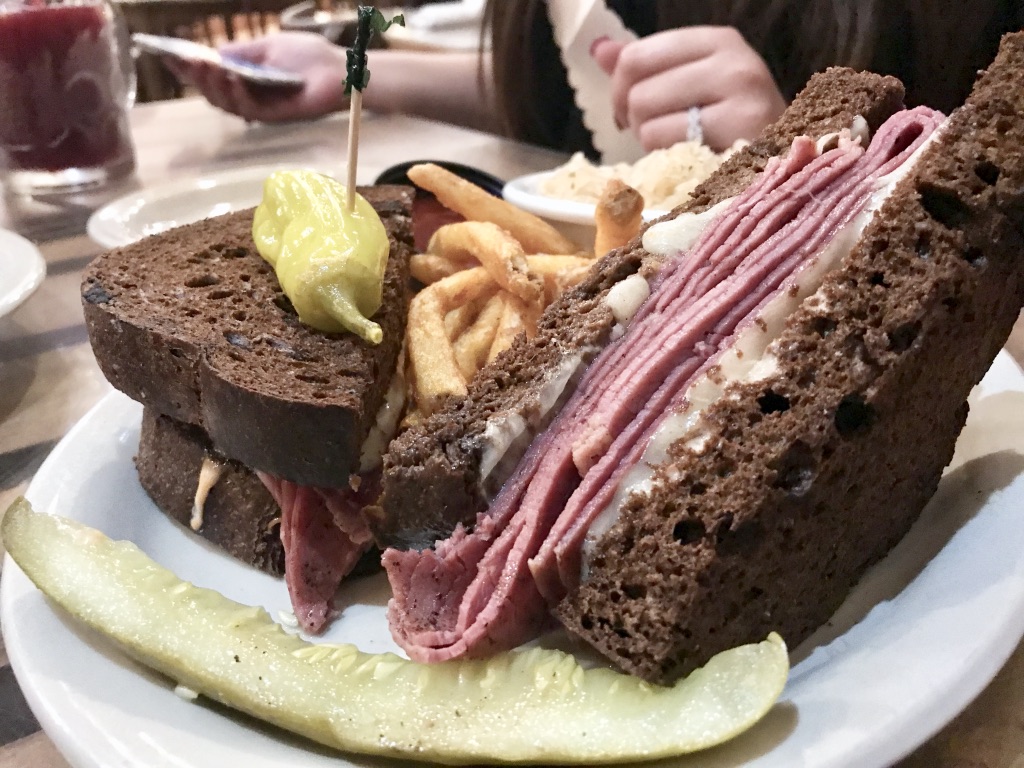 Once we caught on to the fact a lot of places were still closed for the “winter,” we had to change some of our dining plans. One of those changes led us to the Auslander Restaurant. It was the perfect spot, right on Main Street, with a delicious Ruben sandwich. And I have to mention, you can get your frozen sangria to go…. Which is exactly what we did! Even though it was a little chilly that night, we enjoyed sipping our frozen sangrias while we sat in the hot tub!